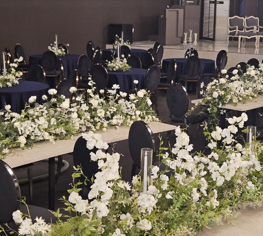 감각적인 인테리어와 다채로운 연출이 가능한 더아트라움은 4가지 콘셉트의 홀을 보유해 취향에 맞는 웨딩을 선택할 수 있는 공간입니다. 각 홀마다 조명·버진로드·백월 디자인이 달라 사진 예식의 분위기를 폭넓게 연출할 수 있으며, 세련된 구조 덕분에 장면 하나하나가 고급스럽게 남습니다. 하객 동선 또한 단정하게 마련되어 있어 예식의 몰입도를 높여줍니다. 다양한 스타일의 웨딩을 완성합니다.